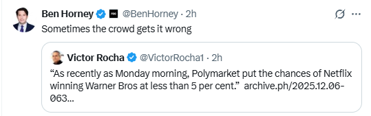 That’s why prediction markets have a selective trust problem. When outcomes align with our views, they’re genius; when they don’t, they’re rigged. Add in “wishcasting” (which I’ve mentioned in the past), and markets amplify echo chambers rather than tear down the walls.