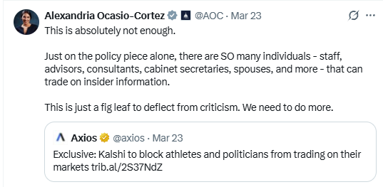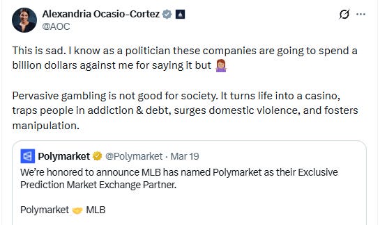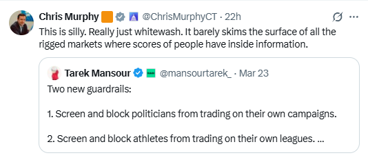 And now, here we are, with numerous entities asking Congress to step in on prediction markets, which is becoming more likely as prediction markets keep drawing unwanted attention to themselves.