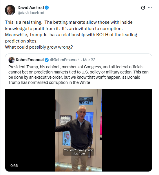 And then there is this two-fer from David Axelrod and Rahm Emanuel: