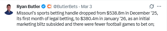 Missouri bill adds a second layer of sports betting taxes [Legal Sports Report]: Missouri State Rep. Jeff Knight introduced HB 3533 that adds a “24% tax on adjusted gross receipts from sports betting, which the bill defines as an operator’s revenue after paying out winnings but before any promotional costs are deducted. The tax would not replace the 10% tax on net Missouri sports betting revenue.” the bill also introduces a 1.5% access fee on remote wagering and a 13% tax on adjusted gross receipts from authorized gambling games.