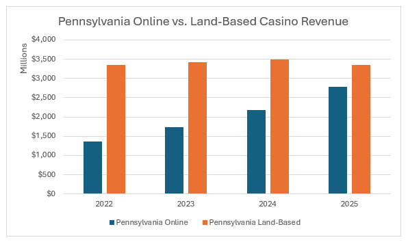 The real issue is how land casino operators retain the lion's share of the economics from online casino. Unlike sports betting, national and regional casino brands have done extremely well in hypercompetitive online casino markets, hanging on to over 50% of the market for years, with much more favorable demographics than the male-dominated sports-led digital juggernauts.
