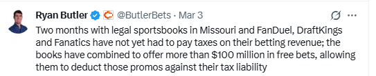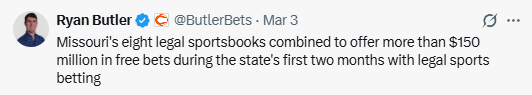 AROUND the WATERCOOLER: Free bets in Missouri.