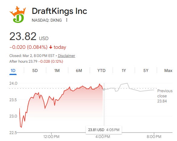 How do investors feel about it? Lukewarm might be the most generous description. Despite what should have been seen as a major announcement, DraftKings’ stock price barely changed yesterday.