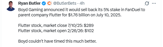 Flutter CEO Peter Jackson explained this in the company’s earnings call, but no one wants to take the time to understand the nuance.