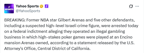AROUND the WATERCOOLER: Gilbert Arenas and Kalshi both go down.