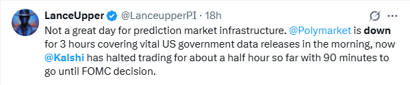 First up was some downtime for Kalshi and, apparently Polymarket: