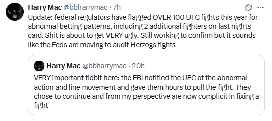 Dulgarian opened as a -240 to -270 favorite but saw his odds shift to around -150 to -160 just before the fight. Even more suspiciously, the prop bet for a first-round finish (which aligned exactly with the outcome) dropped from +850 to +475, prompting some sportsbooks to pull the line entirely to prevent further wagers.